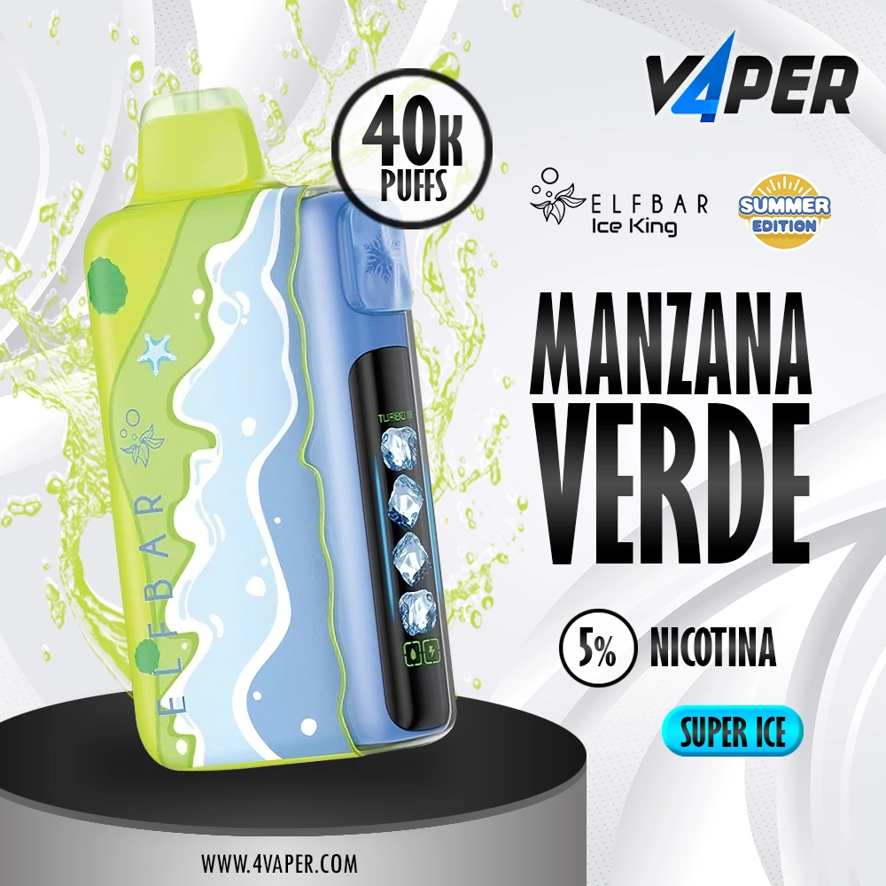 vaper,desechable,somos,tienda,ElfBar Iceking Summer Edition 40K (40000 puff) - Green Apple Slush